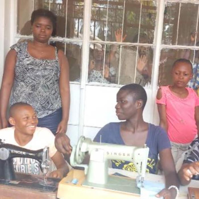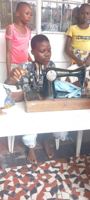 Les deux mamus qui ont suivi les cours de coupe et couture vont apprendre aux ainées des filles et aux autres mamus comment les employer. Après quelques notions théoriques elles pourront se lancer dans la pratique. Elles apprendront à réparer et entretenir les vêtements des enfants, confectionner uniformes et autres vêtements...